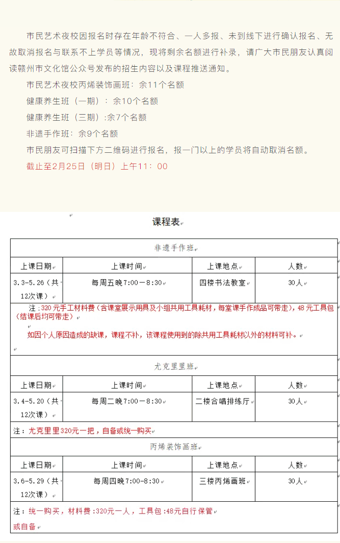 赣州市文化馆2025年春季市民艺术夜校补录报名开始啦!