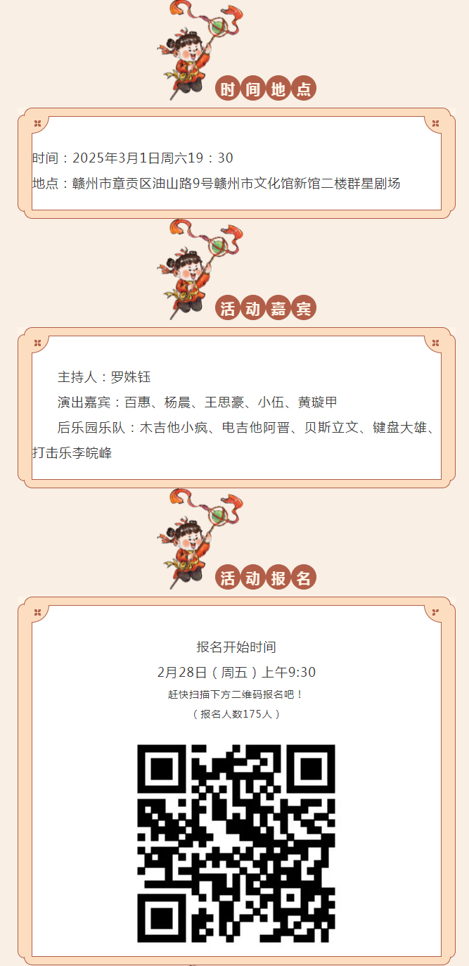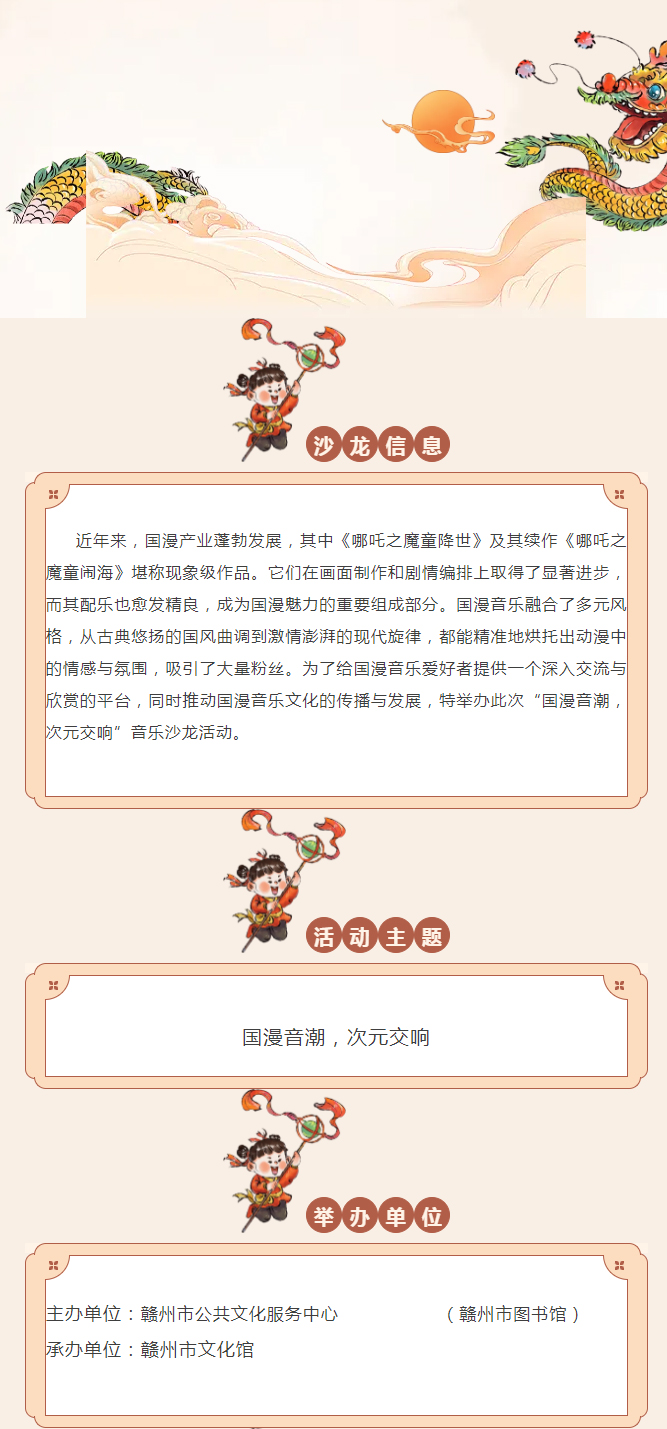 ※ 特别声明:本活动信息仅用于赣州市音乐家协会、赣州市文化馆公共文化服务及群众文化艺术普及,不用于任何商业用途。所转载文章及图片、视频、音频等版权均属原作者。如有侵权,请及时与本公众号联系。