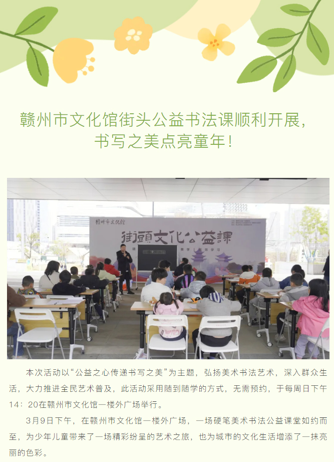 赣州市文化馆街头公益书法课顺利开展,书写之美点亮童年!