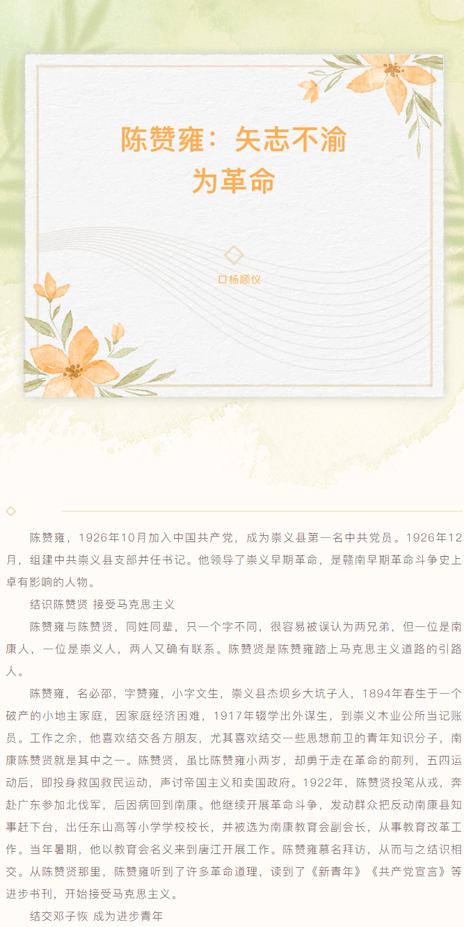 当前位置: 首页 > 文化动态 > 群文者说 | 陈赞雍:矢志不渝为革命