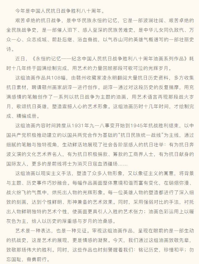 群文者说 | 油画再现历史 致敬伟大胜利《永恒的记忆——纪念中国人民抗日战争胜利八十周年油画系列作品》绘制完成