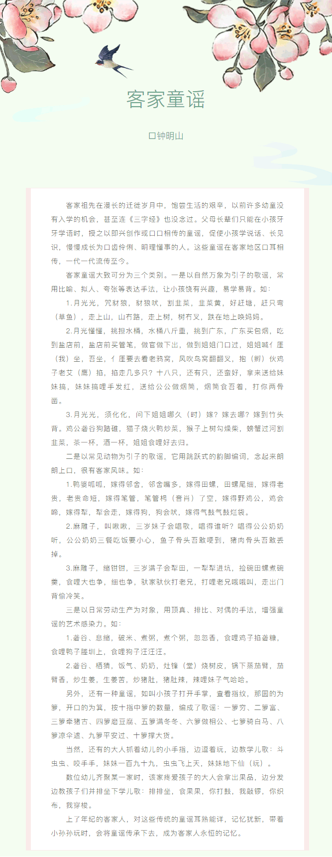 当前位置: 首页 > 文化动态 > 行走赣南 | 客家童谣