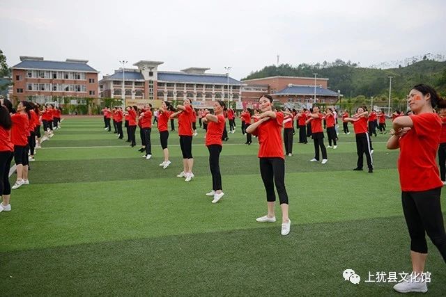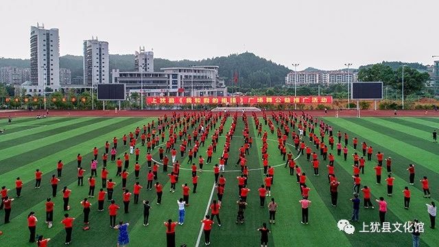 上犹县文化馆组织全县各晨练点、老年大学、文艺团体的广场舞爱好者三百余人齐聚广场,在指导团队的带领下,用最饱满的热情齐跳《我和我的祖国》广场舞,展现了在中国共产党的领导下,上犹广大群众昂扬向上的精神面貌和阔步走进新时代的坚定信心。