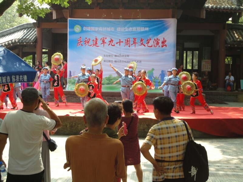 关刀坪艺术团志愿者在赣州公园举行庆“八一”文艺演出
