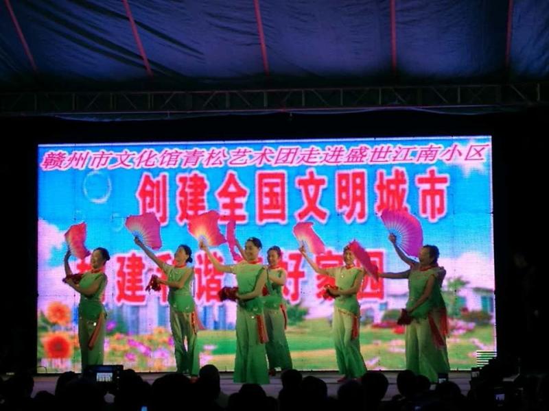 青松艺术团志愿者在盛世江南小区举行创文明城文艺演出