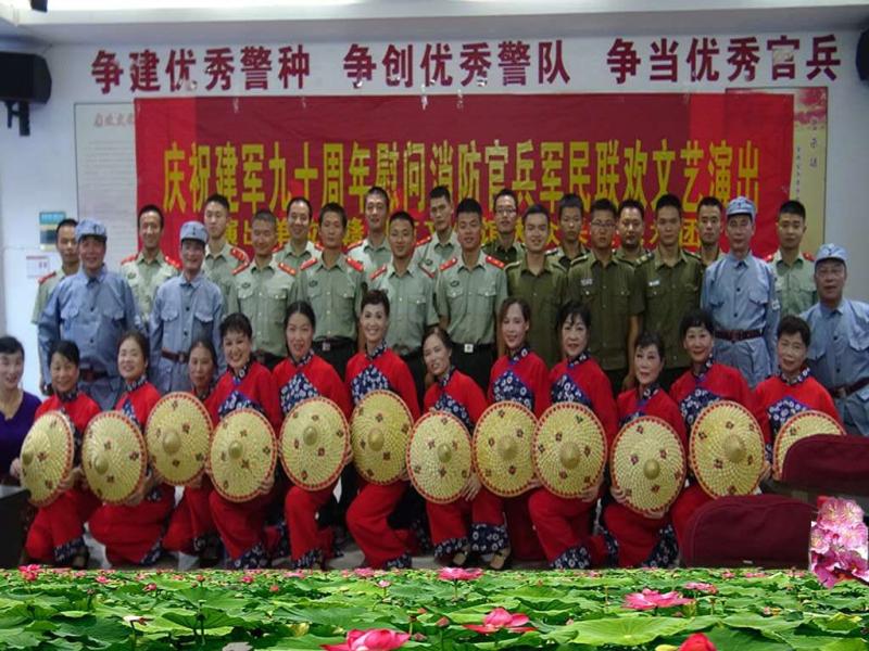 大众采茶艺术团志愿者在章贡区消防大队举行庆八一慰问消防官兵文艺演出