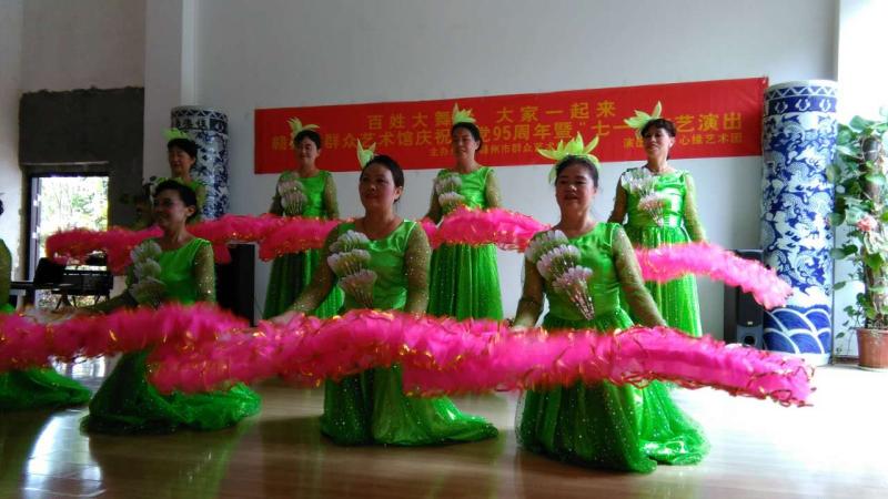 金秋艺术团文化志愿者在上犹老年公寓庆祝建党95周年演出