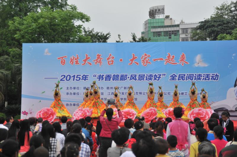 2015年4月18日“百姓大舞台-大家一起来”2015年“书香赣鄱 风景独好”全民阅读活动文艺演出在中心城区南门文化广场西园举行。