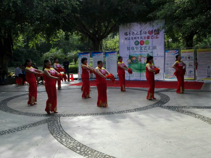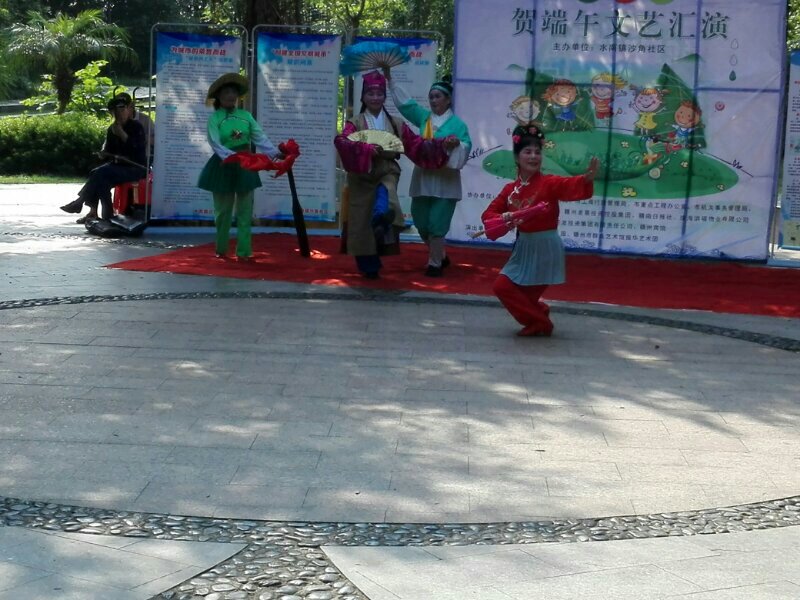2017年5月26日振华艺术困志愿者在章贡区水南镇沙角社区樱花公圆迎端午暨庆六一儿童节文艺汇演。