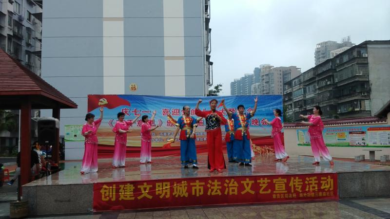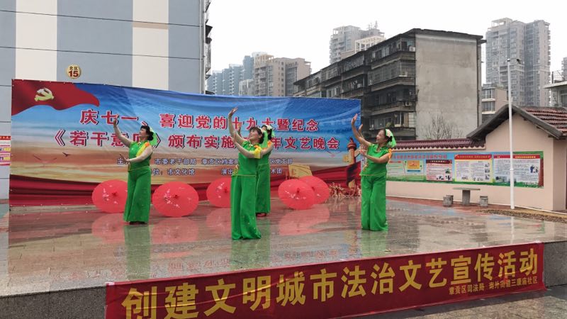 星光艺术团志愿者在三康庙社区举行庆七一喜迎党的十九大暨纪念《若干意见》颁布实施五