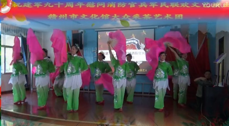 大众采茶艺术团志愿者在章贡区消防大队举行庆八一慰问消防官兵文艺演出