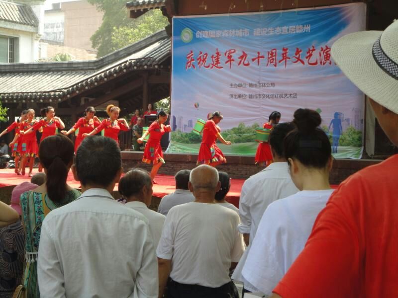 红枫艺术团志愿者在赣州公园举行庆八一文艺演出