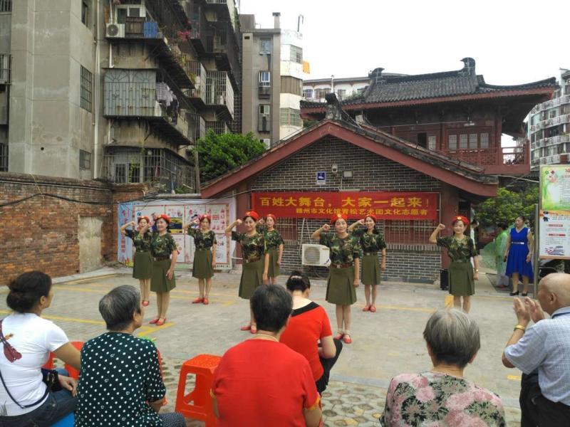 青松艺术团志愿者在大新开路社区举行“百姓大舞台-大家一起来”文艺演出