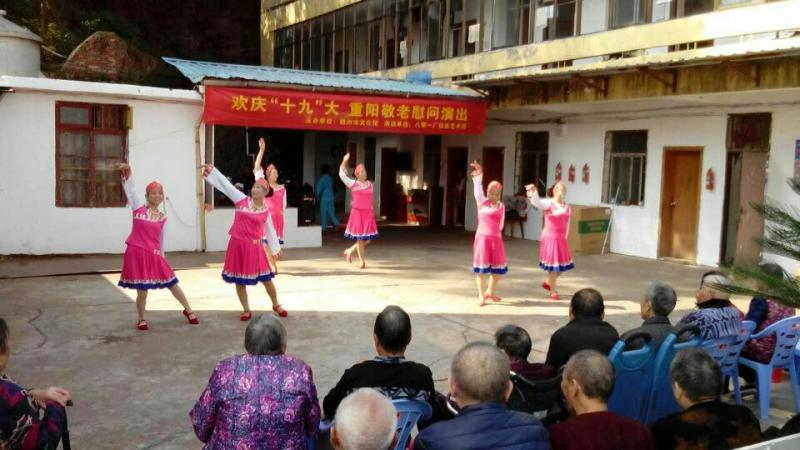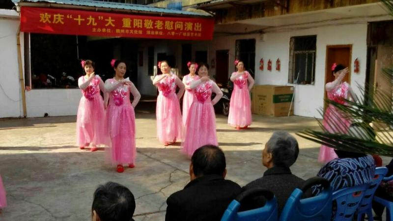 2017年10月26日八O一社区艺术团志愿者下到夕阳红托老所进行九九重阳慰问文艺演出。