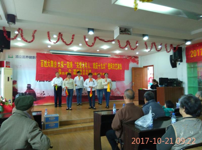 2017年10月21日心连心艺术团志愿者在添立敬老院举行“关爱老年人 欢庆十九大”慰问演出。