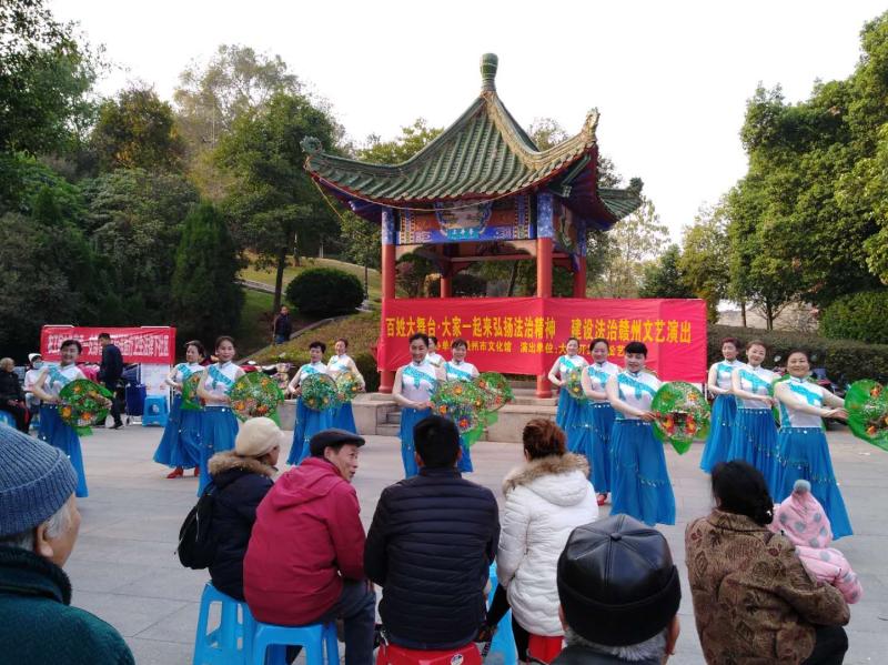 2017年12月8日青松艺术团在郁孤台进行《法制赣州活动》演出。
