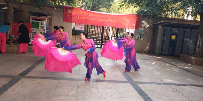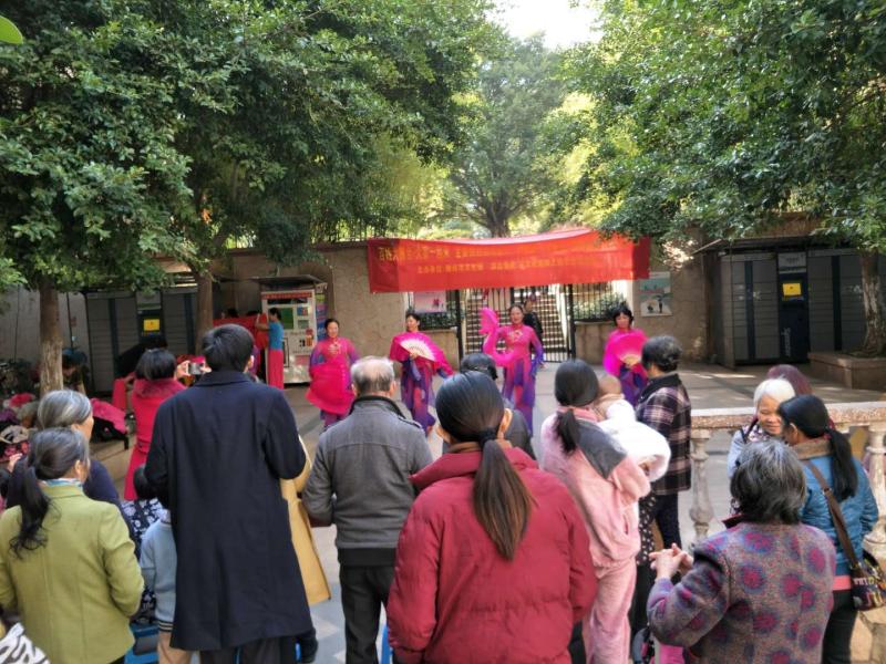 2017年12月9日舞之韵牡丹艺术团在长虹社区爱丁堡举行法制赣州,积极践行社会主义核心价值观演出。