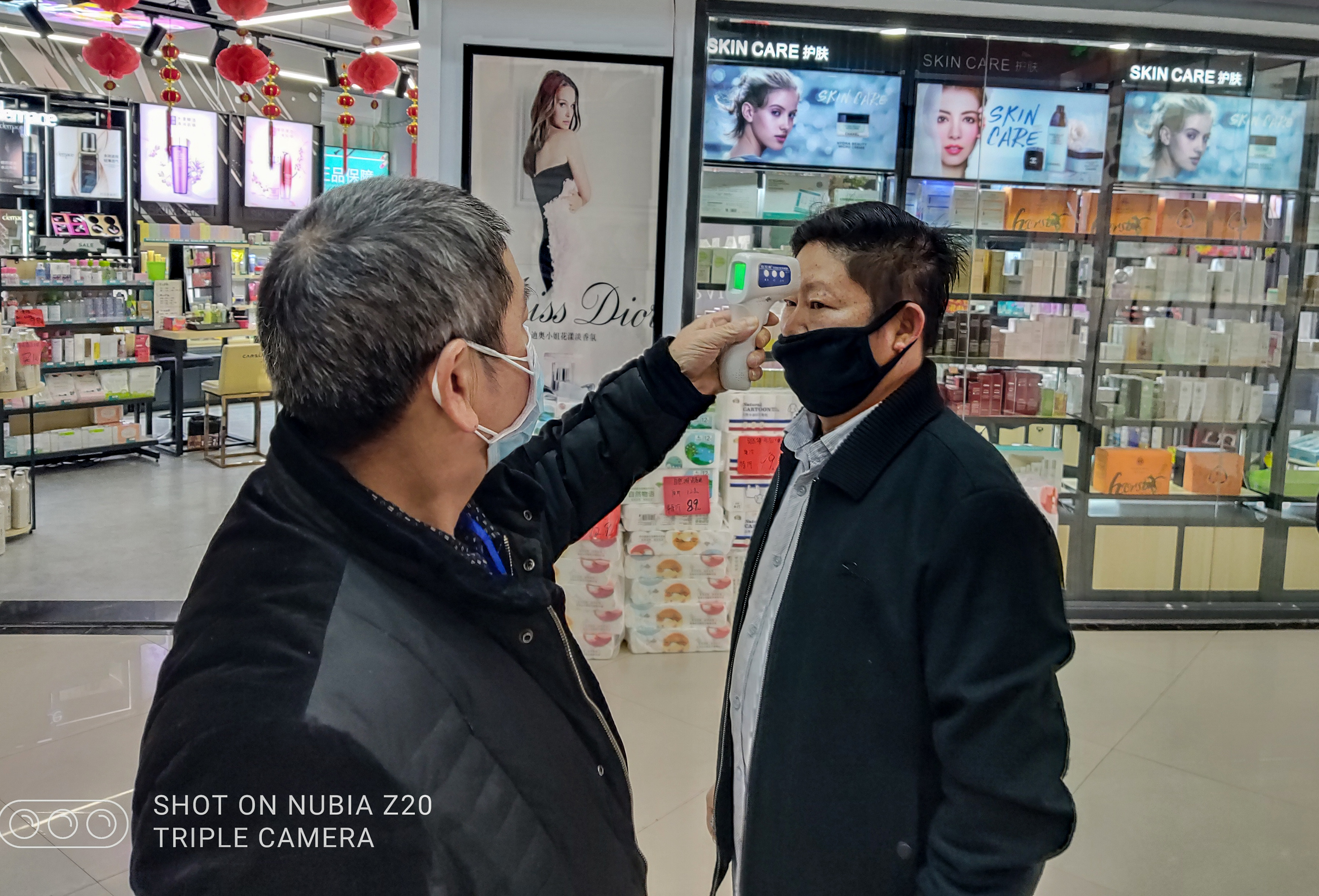 入超市先测体温 温礼明拍于石城万象广场好又多超市